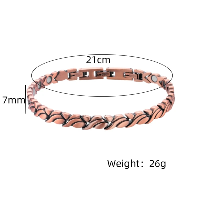 Unisex Vintage Magnetic Bracelet 6.5mm - Pure Copper Chain, Health Energy Arthritis Relief Jewelry